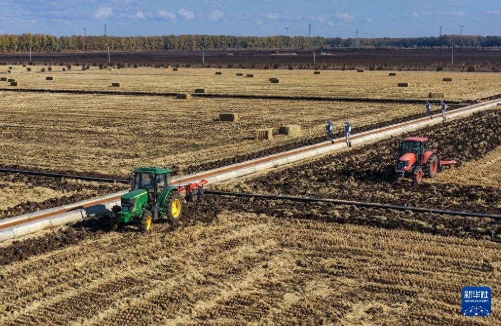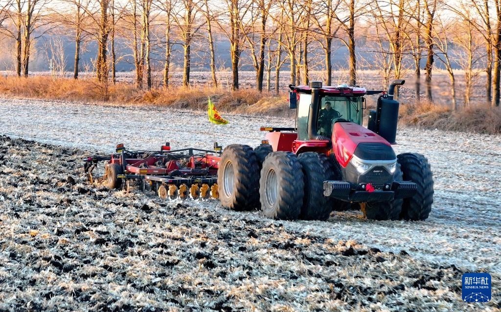 10月23日实配网配资实配网配资,农机在黑龙江北大荒农业股份友谊分公司田间进行整地作业 (无人机照片)。