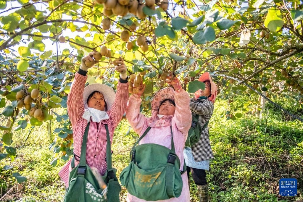 10月23日,农民在云南省文山壮族苗族自治州西畴县国家石漠公园猕猴桃种植基地采摘猕猴桃。